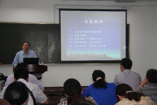 5月18日上午,我校数学与信息科学学院特邀教育部数学基础课程教学指导委员会委员、国家级教学名师、南京理工大学杨孝平教授来校作了题为“浅谈大学数学教学中的思想与方法”的报告,该院全体教师聆听了此次报告,报告由副院长黄士国主持。