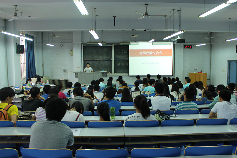 为使我院广大同学对研究生入学考试有更深入的了解,帮助学生解决和处理在研究生入学考试备考过程中遇到的问题,端正考研态度,提高考研热情,5月21日下午,数学与信息科学学院在东一楼218室成功举办“正学风 聚能量”考研经验交流会。11级部分考研成绩优秀的学生以及12、13级学生参加了交流会。