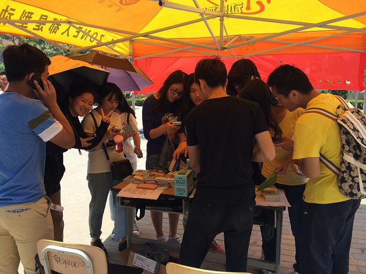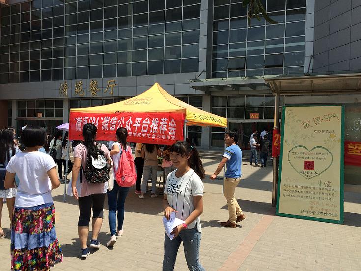 活动前三天,心理部工作人员便在三教楼前摆放介绍“微语SPA”的宣传板,并且发放宣传单;活动中,心理部人员主动与过往同学介绍活动内容,介绍微信公众号的诸多好处,极大地吸引了我校同学的关注,并且我们赠送了很多精心准备的小礼品,获得了广泛赞誉。通过微信推荐会这种活动形式,更好的将公众号推广到了全校,为全校学生更方便的推送心理健康方面的信息、推送各类热点信息,达到了预期效果。