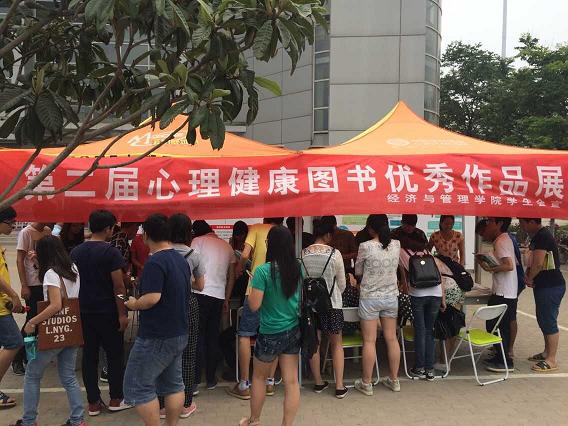 为传播心理健康知识,激发同学们的读书热情,培养良好的学习和思考习惯,帮助同学们提高心理素质,促进身心健康成长,在6月2日,经济与管理学院学生会心理部在科学校区清苑餐厅门口承办了我校心理健康图书优秀作品推荐活动。