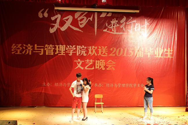 6月8日晚7:00,经济与管理学院在我校科学校区三教楼208举办了欢送2015届毕业生文艺晚会。经济与管理学院党总支书记孙向东、党总支副书记刘洪民、全体专兼职辅导员以及我院毕业生共700余人观看了演出。