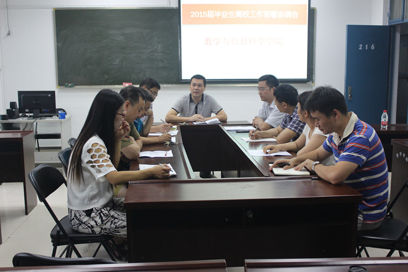6月17日下午,数学与信息科学学院在东一楼216会议室召开毕业生离校工作会议。学院党政领导班子成员、各教研室主任、全体辅导员参加会议,会议由党总支副书记张阳主持。