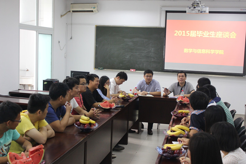 6月18日上午,数学与信息科学学院在东一楼216室召开了2015届毕业生代表座谈会,学院领导、教师代表、全体辅导员参加了会议。