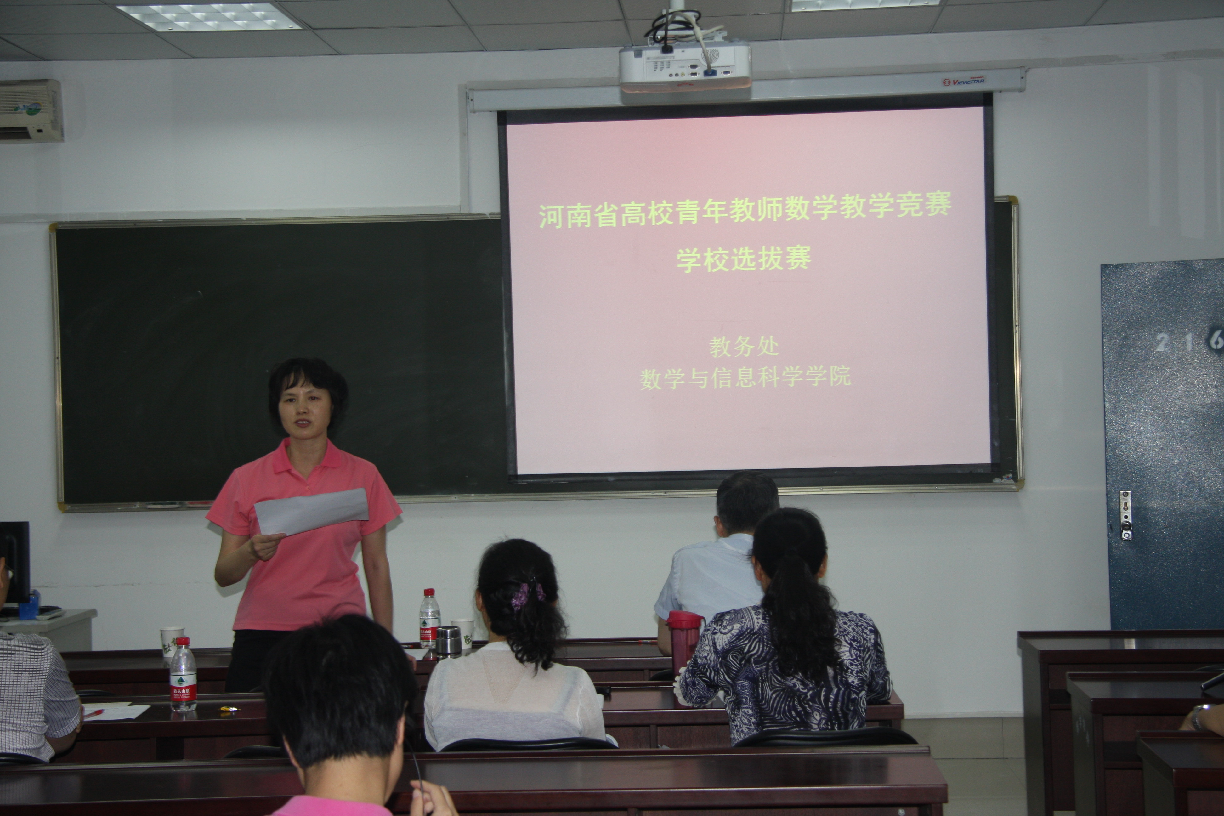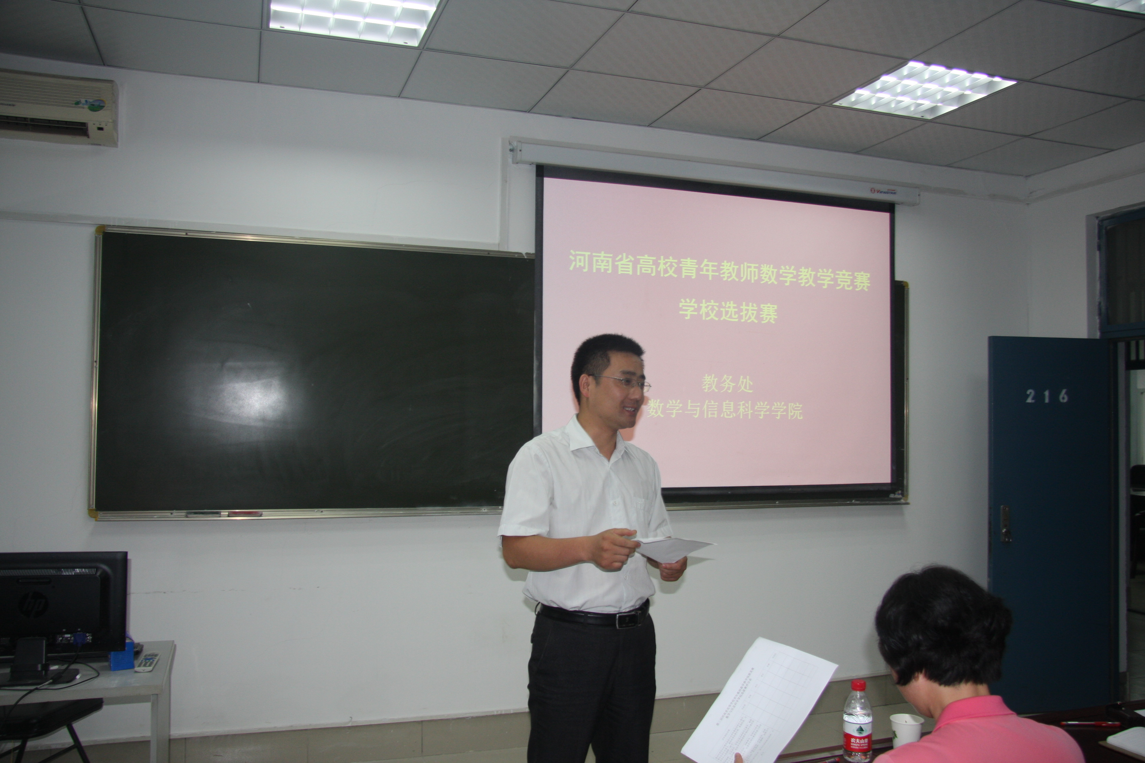 河南省高校青年教师数学教学技能竞赛每两年举行一次,今年是第三届,学院和学校历来高度重视这一赛事,均取得优异成绩。从5月份开始,数学与信息科学学院开始组织此次竞赛的校内选拔工作,通过教研室、学院、学校三级选拔赛,展示了风采,加强了交流,推动学院青年教师教学技能水平得到不断提高。