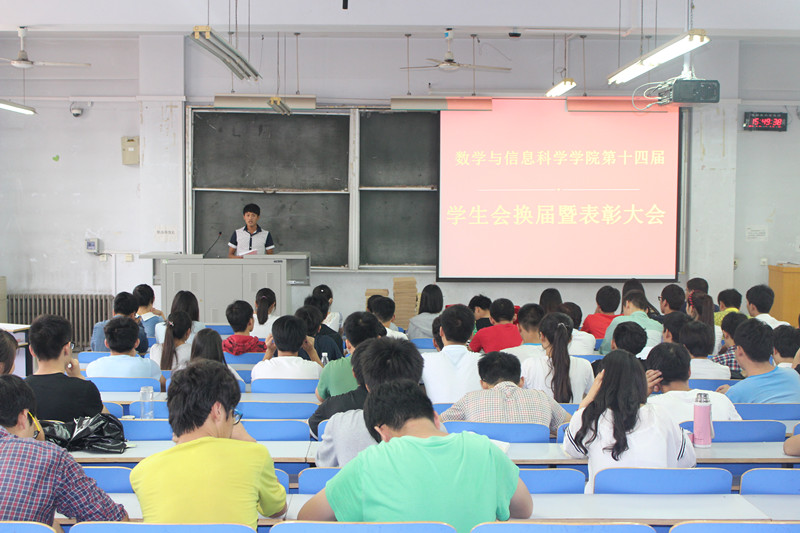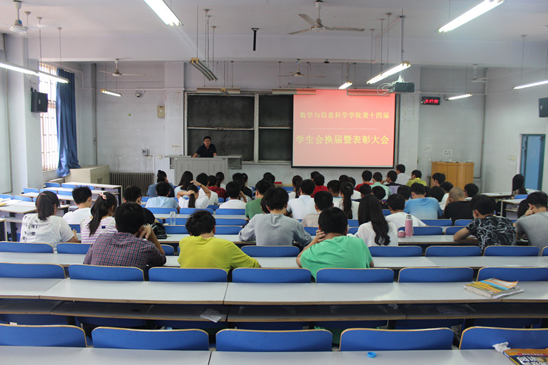 6月25日下午,数学与信息科学院学生会换届暨表彰大会在东一楼218室举行,院党总支副书记张阳老师、分团委书记谭俊超老师、辅导员张智勤老师及学生会全体成员参加了此次会议。