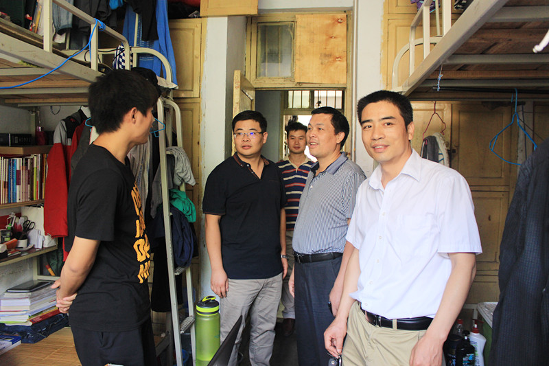 在慰问走访过程中,学院党政领导详细询问同学们思想动态和生活、学习情况,以及寝室搬迁过程中遇到的问题,叮嘱大家如果有任何困难要及时反映给院里,院里会第一时间帮助解决。党总支书记黄守佳代表学院对暑假留校备战研究生入学考试、数学建模培训、各类从业职格考试等学习的同学表示亲切慰问,希望同学们一要珍惜宝贵的时间和来之不易的学习条件,不断充电,积极进取;二要制定计划,勤奋学习,克服困难,积极实践,努力实现预期的目标;三要保重身体,注意人身安全、饮食安全、交通安全、财产安全等,特别要注意防暑,做到学习、身体两不误,过一个“安全、快乐、健康、充实”的暑假。同学们对学院领导老师的亲切慰问也表示了衷心的感谢,表示一定严格遵守学校的规章制度,不辜负领导老师的期望。