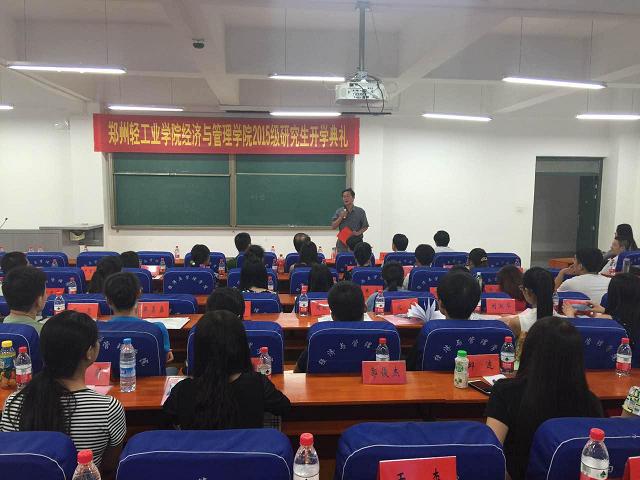 9月8日下午,经济与管理学院2015级研究生开学典礼在经管楼211教室隆重举行。院领导孙向东书记、彭诗金院长、刘珂副院长、周广亮副院长、财务处辛作义处长、李雪峰老师、科技处管洲副处长、教室代表仝新顺老师、MBA教育中心行政工作人员冉净飞、梁峰、彭青秀、程永帅、新学员等60余人出席典礼。典礼由书记孙向东主持。