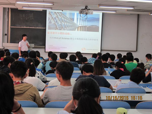 201510月15日下午,图书馆在东风校区教三楼104教室举办了题为“激励发现推动创新——Web of Science核心合集(SCI/SSCI/A&HCI/CPCI)在科研中的应用”专题讲座。