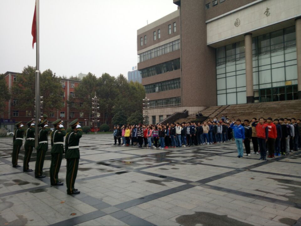 为进一步加强爱国主义教育,引导学生以更加饱满的精神状态践行社会主义核心价值观,号召青年学子坚定理想信念,数学与信息科学学院和外国语学院于10月26日清晨在东风校区图书馆广场举行了庄严的升国旗仪式。
