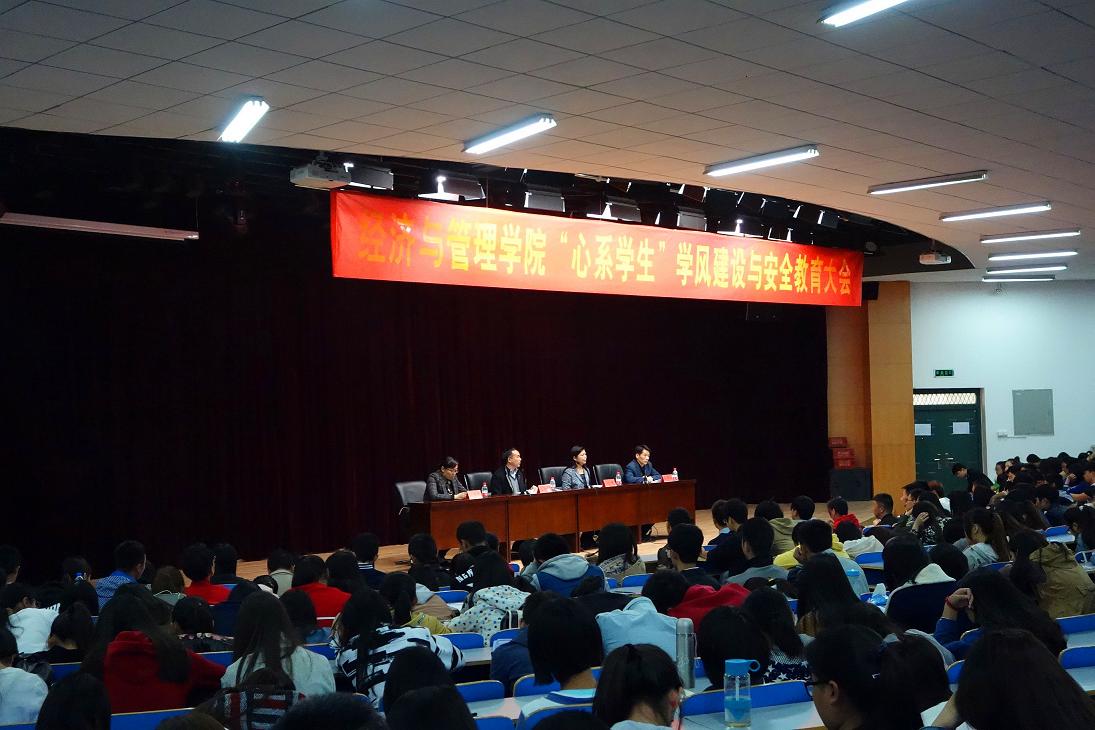 10月28日,经济与管理学院在科学校区大学生活动中心208召开了“心系学生”学风建设与安全教育大会。经济与管理学院院长刘珂、副院长仝新顺、分团委、学工办、教务员、专兼职辅导员以及各班班长、团支书、学习委员、寝室长共500余人参加了会议。会议由经济与管理学院副院长仝新顺主持。
