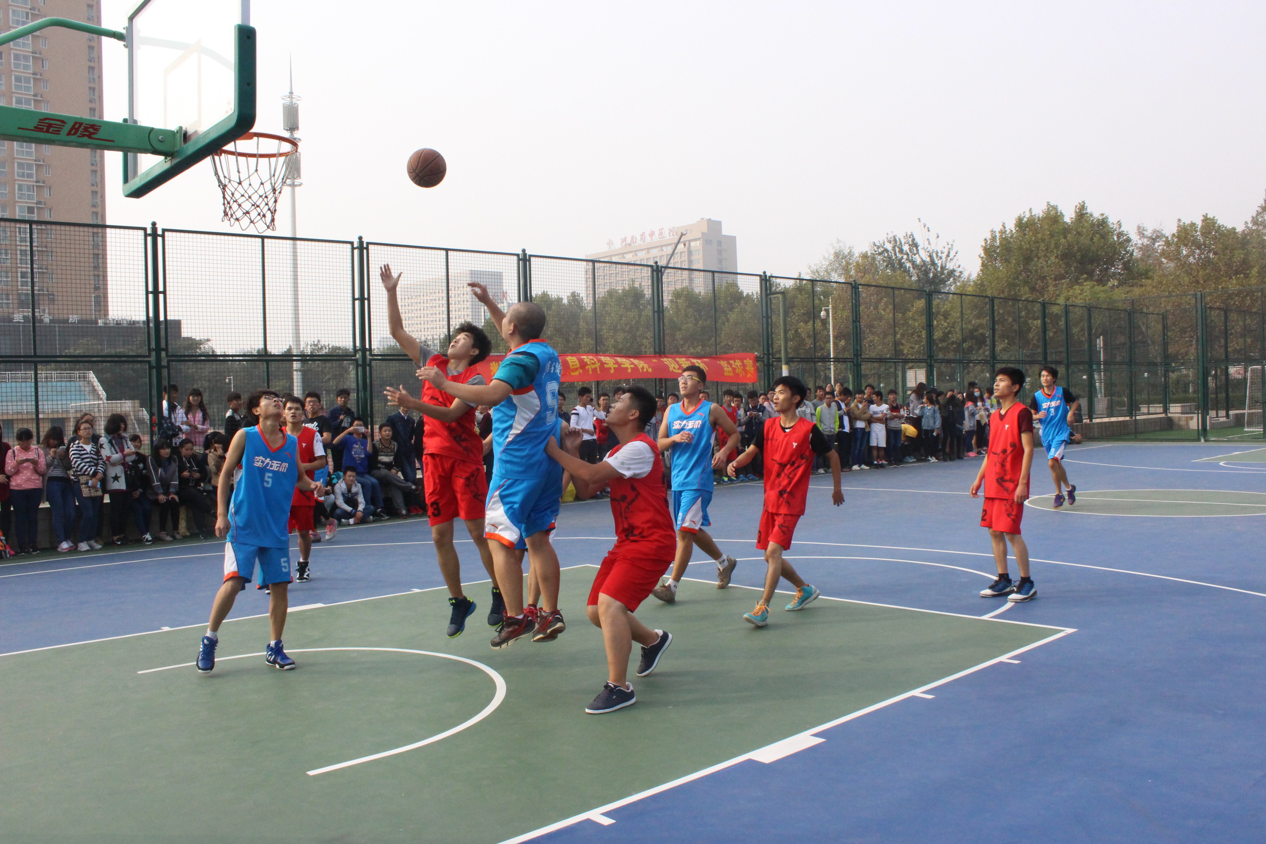 为丰富新生的校园文化生活及课余生活,活跃学院氛围,10月24日至27日,数学与信息科学学院在东风校区篮球场举办一年一届的“新生杯”篮球赛。