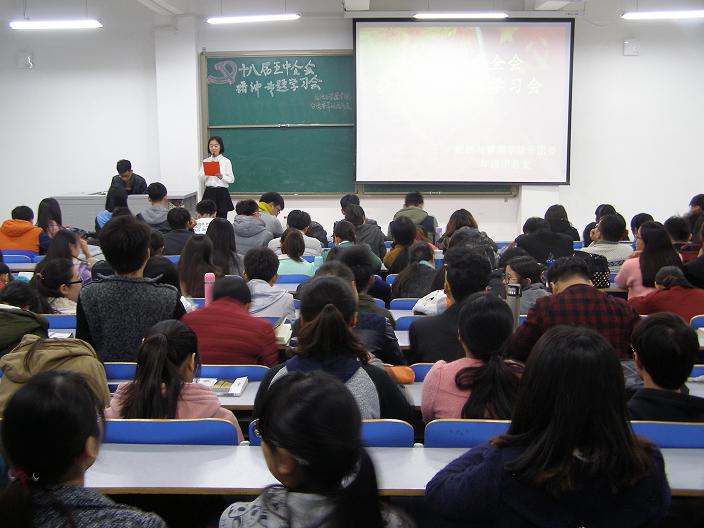 为贯彻学习十八届五中全会精神,进一步加强学生党支部建设,落实大学生思想政治教育工作,经济与管理学院学生党支部于2015年11月12日下午在科学校区经管楼309召开十八届五中全会会议精神专题学习会,经济与管理学院全体学生党员、部分学生入党积极分子参加了学习会。