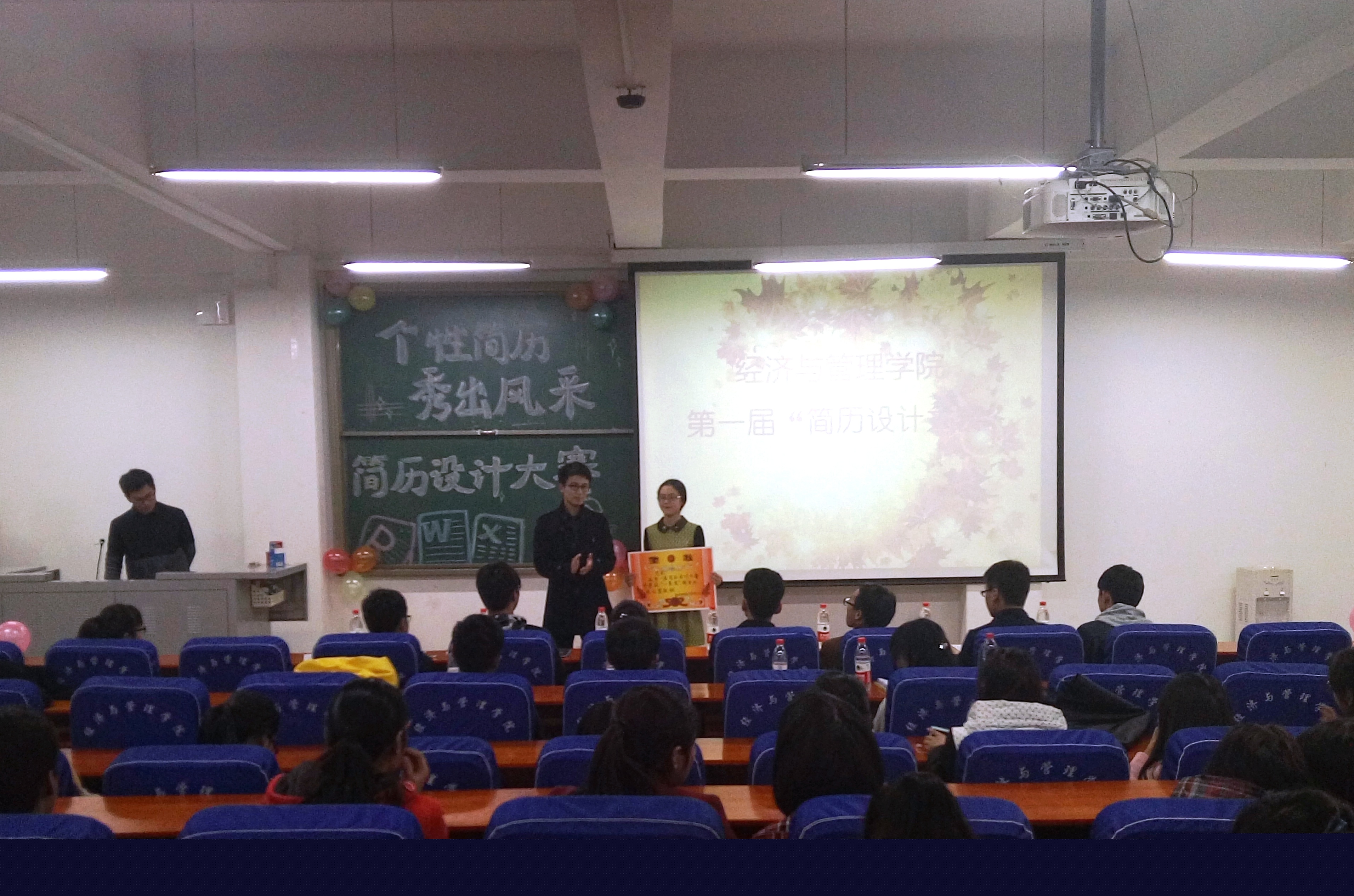 为了使同学们尽早了解社会求职的需要,增强就业意识。11月17日,经济与管理学院学生会社践部在经管楼211举办了“个性简历,秀出风采”大学生简历设计大赛。