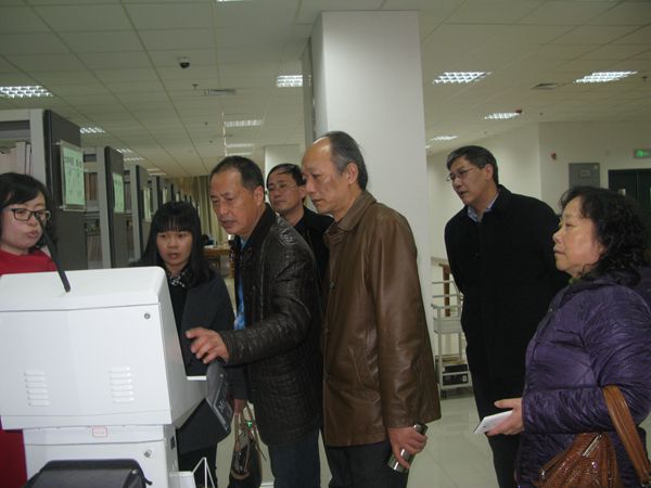 最后,在各单位负责人的陪同下,湖南理工学院考察团一行实地考察了图书馆的各学习空间,重点考察了我馆引进的RFID技术实现自助式借还书设备的使用情况。