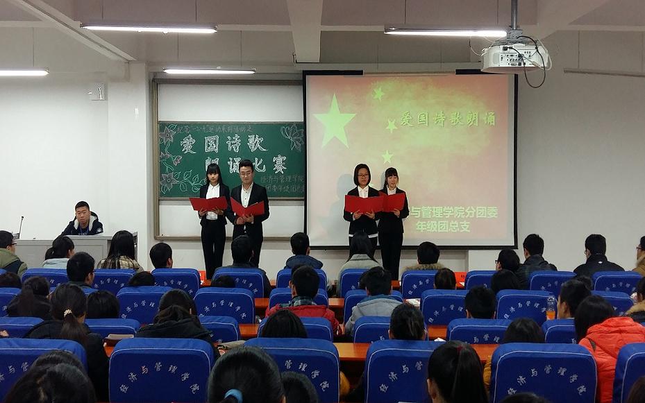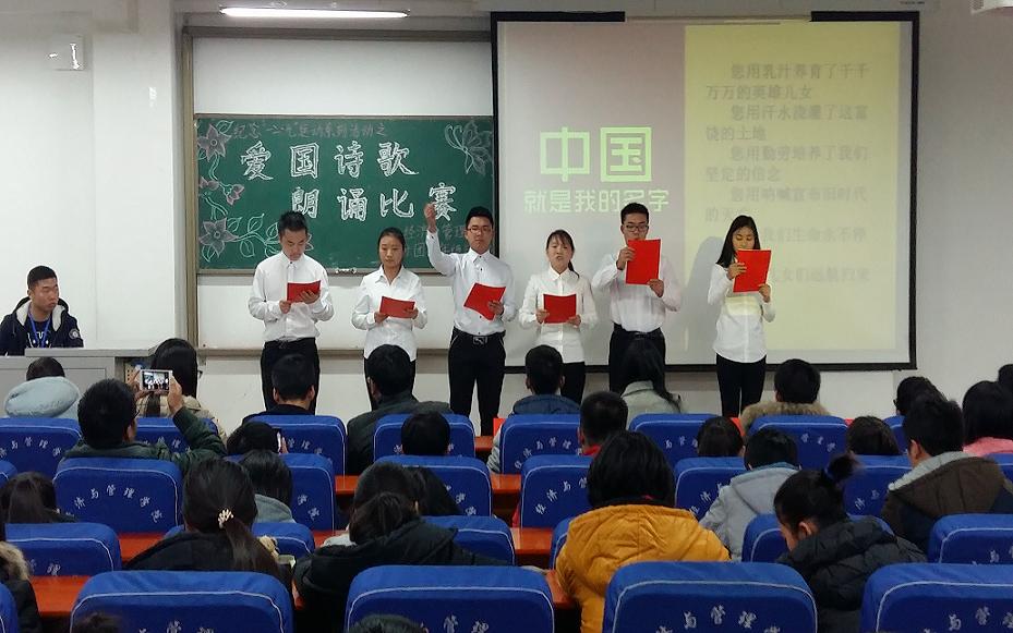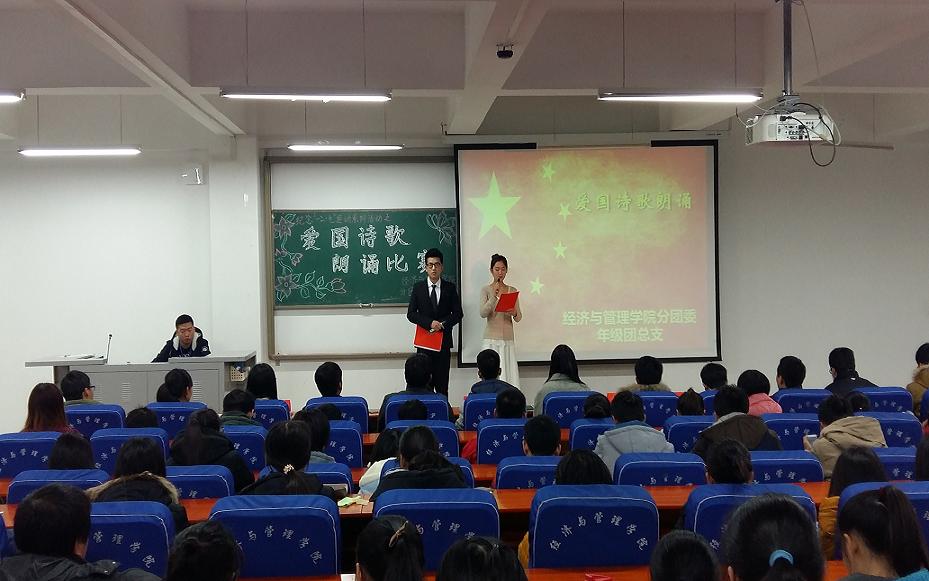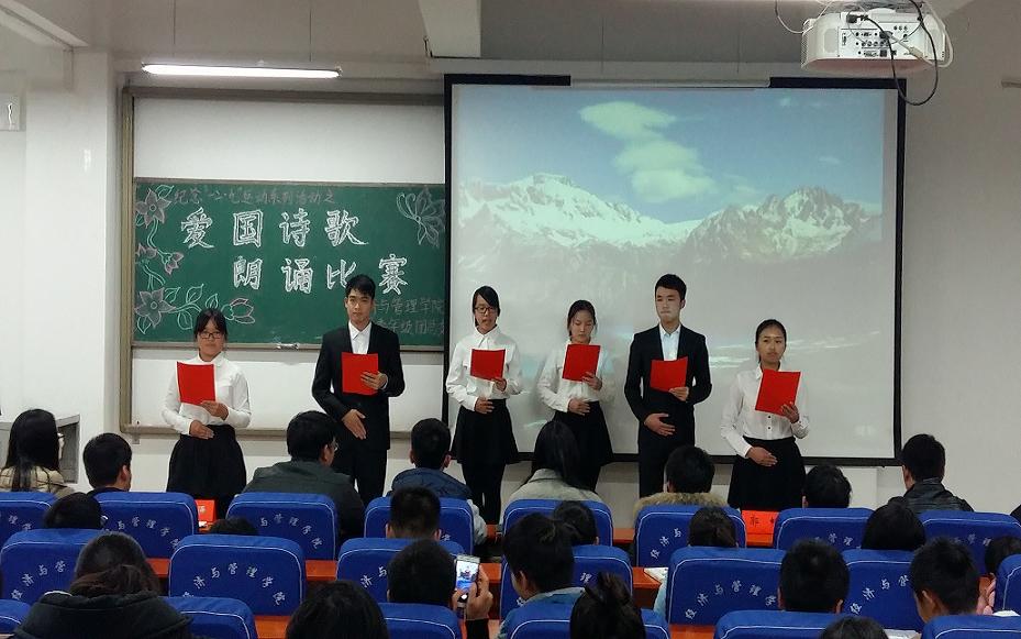 为弘扬爱国主义精神,激发广大学生的爱国热情,11月25日19:00,经济与管理学院在经管楼211成功举办了纪念“一二·九”运动80周年系列活动之爱国诗歌朗诵比赛。