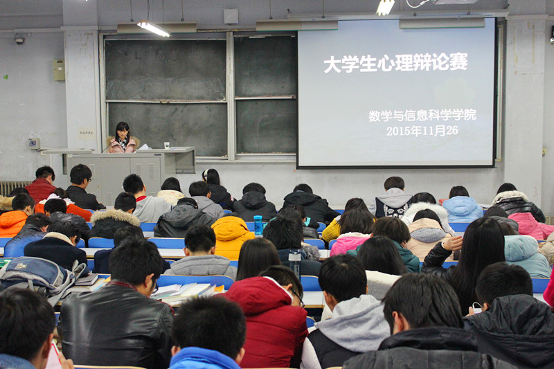 为丰富校园文化生活,帮助同学们关注和提高自身心理健康问题,提升同学们的应变思维和语言表达能力, 11月26日下午,数学与信息科学学院于东一楼218举办心之物语之“大学生恋爱利与弊”辩论赛。此次比赛由我院学生会成员担任评委,2015级20余名选手参加。