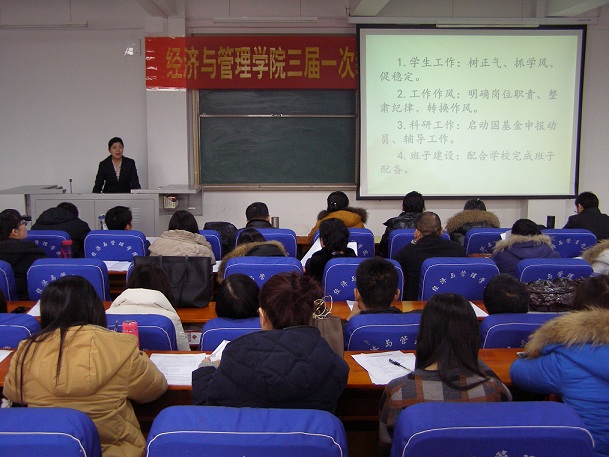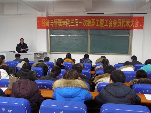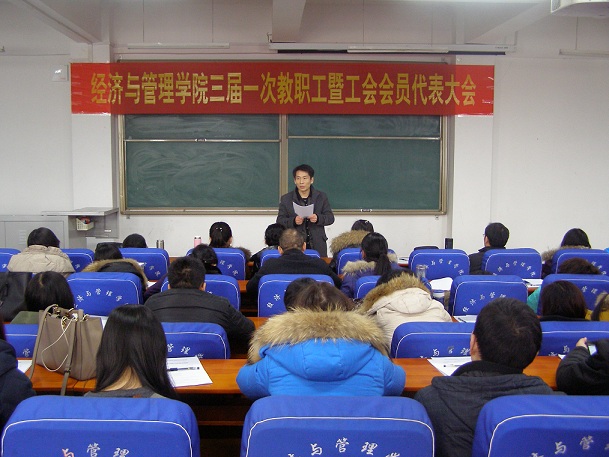 1月21日上午10:00,经济与管理学院在经管楼211室举行三届一次教职工暨工会会员代表大会。会议由党总支书记邢晟主持。