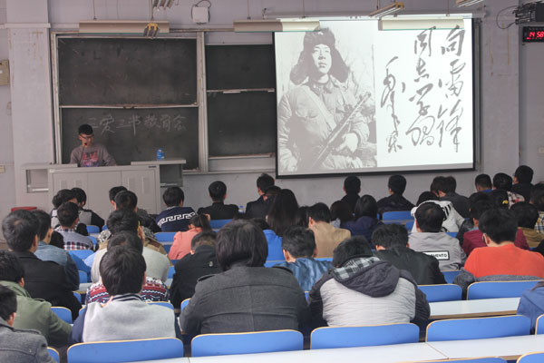会议伊始,主持人首先介绍了“三爱三节”的概念和活动开展的重要性,使同学们对“三爱三节”的意义有了更深刻的理解与认识。活动中同学们围绕“三爱三节”各抒己见,畅所欲言,结合自己的生活实际与同学们分享着自己的学习、劳动和节俭生活的经验,使其真正融入到未来的学习生活当中,为培养良好的行为打下了坚实的基础。随后,主持人又通过PPT的形式为同学们详细介绍了关于雷锋同志无私奉献的事例,认识到雷锋精神与时俱进,随着历史的变革,时代的进步,雷锋精神仍就被新时期的青年所传承,并用自己的行为为其注入新的内涵和赋予了新的形式。