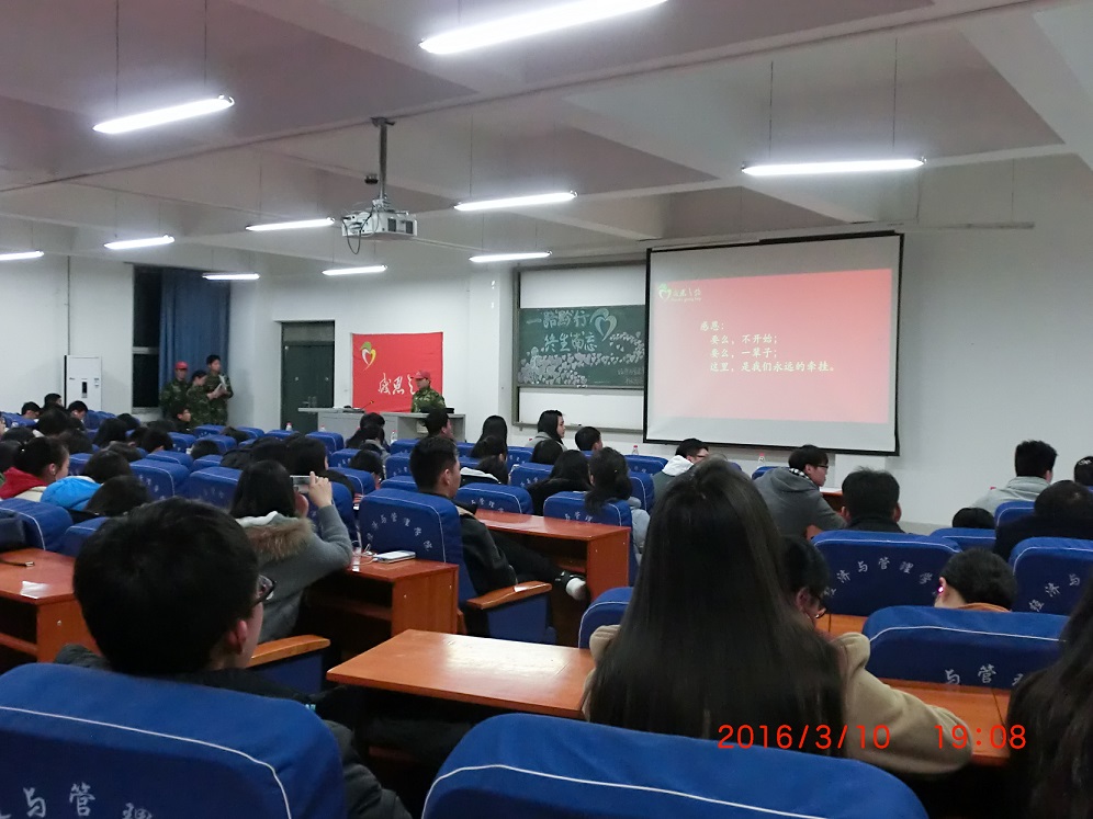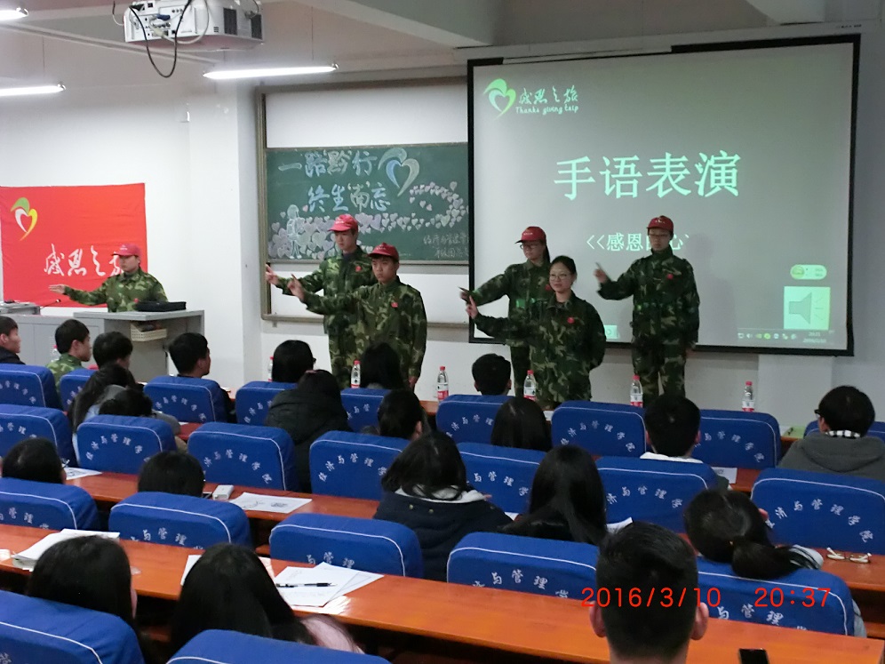 为了深入开展“我的中国梦”主题教育实践活动,传播和弘扬大学生志愿者精神、雷锋精神。2016年3月10日19:00,经济与管理学院在科学校区经管楼211举办“一路‘黔’行终生‘南’忘”支教感恩分享交流会。“感恩之旅”支教助学联盟成员、经济与管理学院学生干部和2015级学生参加了本次交流会。