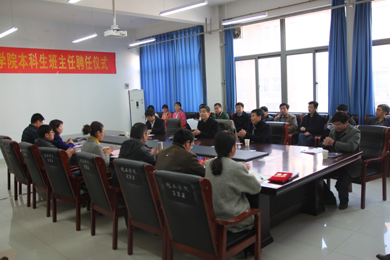 3月10日下午,材料与化学工程学院本科生班主任聘任仪式在科学校区化工楼222会议室举行。校党委副书记窦效民教授出席聘任仪式。材料与化学工程学院党政班子全体成员、新聘任班主任老师、全体辅导员及各班学生代表参加了此次活动。党委学工部部长、学生处处长张世涛也应邀参加了聘任仪式,仪式由学院党总支书记康国磊主持。