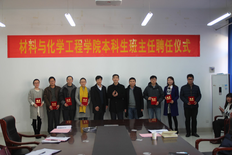 会上,院长方少明教授首先宣读了《材料与化学工程学院关于聘任冯孝中等21名同志担任本科生班主任的决定》,随后与会各位领导为受聘班主任老师颁发聘书。高分子材料专业老师张晓静博士与应用化学专业2013级1班周彦培同学分别代表新聘任班主任与学生代表发言。