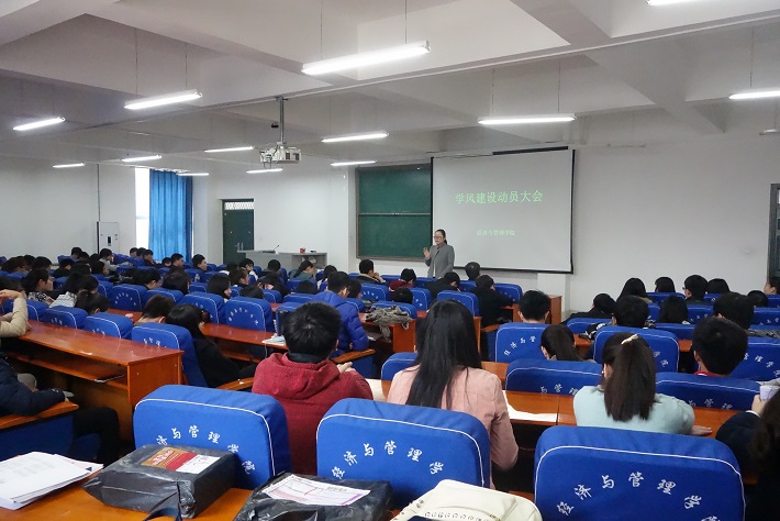 为进一步促进学风建设,营造良好的学习氛围,形成“以学为先、以学为荣”的良好风气,3月18日中午12:30,经济与管理学院在经管楼211室召开学风建设动员大会,经济与管理学院党总支书记邢晟,党总支副书记陈章美,分团委书记姚少华以及14级、15级全体学生干部和部分学生代表参加了本次会议。会议由副书记陈章美老师主持。