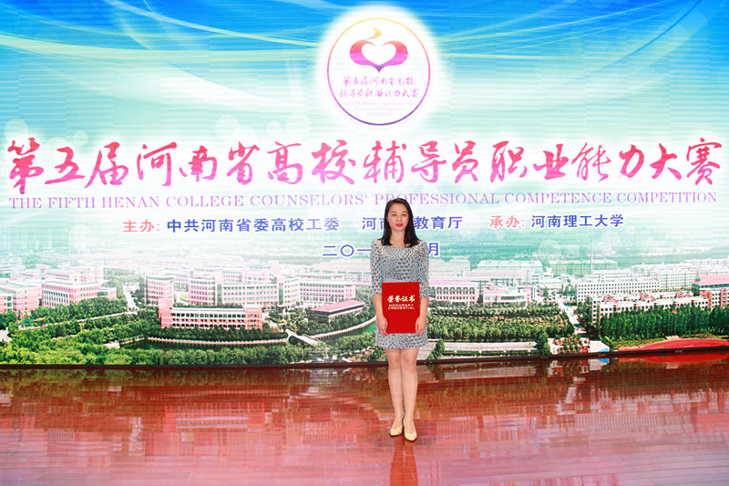 3月22日-25日, 由河南省委高校工委、省教育厅主办的第五届河南省高校辅导员职业能力大赛在焦作举行,来自全省104所高校的120名辅导员参加大赛。经过紧张激烈的角逐,我校国际教育学院辅导员陈璐以复赛全省第一名的成绩进入决赛,最终获得大赛特等奖,学校获本次大赛“优秀组织奖”。