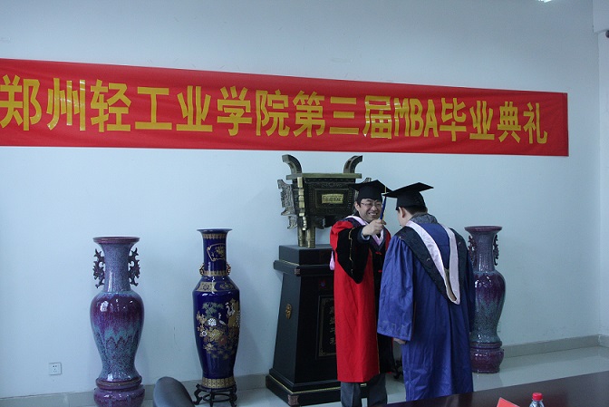 最后,经济与管理学院院长刘珂教授宣读了毕业学员名单。学员们怀着无比激动的心情从导师的手中领取毕业证书,然后逐一走上主席台,安士伟副校长亲自为每位毕业生一一拨穗。这是本次典礼最隆重的时刻!郑州轻工业学院第三届MBA毕业典礼也定格在这一瞬间。