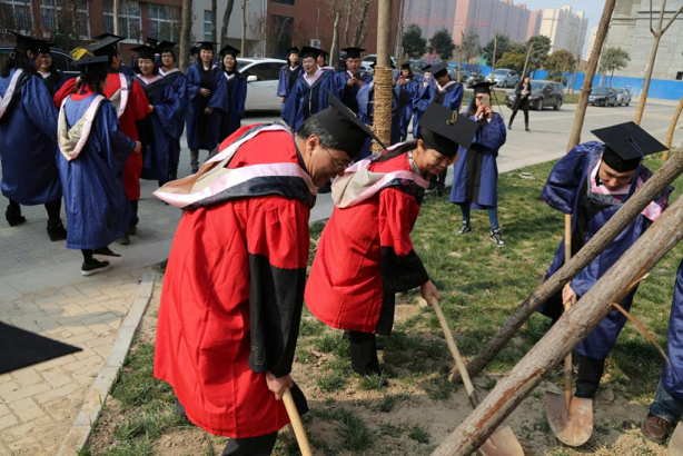 上午9:30,学员们着硕士学位礼服与导师们在经管楼前集体合影。合影结束后师生们共同参与2013级MBA学员向母校赠树、植树活动。上午10:00,在庄严的国歌声中,毕业典礼正式开始。首先,由安士伟副校长讲话,他代表学校对MBA学员们顺利完成学业并取得学位表示祝贺,鼓励同学们在今后的人生道路上继续奋勇前行,追求卓越,不断创新,努力践行自己的人生理想,并祝愿学员们身体健康,生活幸福,事业蒸蒸日上。同时,安校长在致词中回顾了郑州轻工业学院MBA六年来的发展历程,希望同学们多关注母校的发展,有机会多回母校看看。接着,教师代表姜黎辉教授发表热情洋溢的讲话,随后,各级学员代表和MBA联合会代表先后发言,深深表达了学员们对我校MBA工作的高度认可、充分肯定和感激之情。