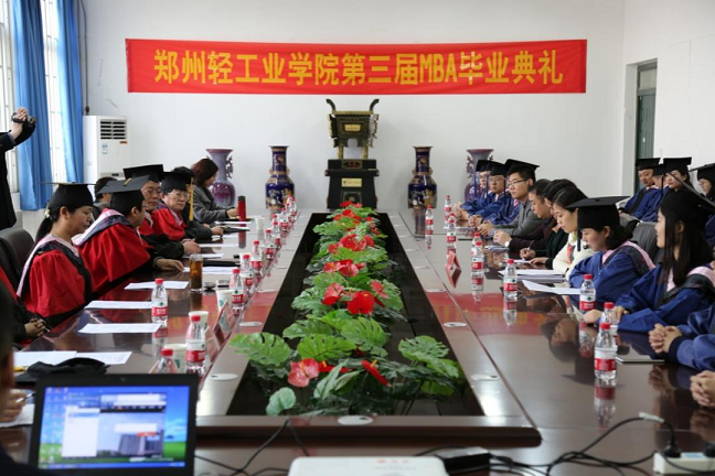 2016年3月26日上午,在MBA中心工作人员的精心准备下,郑州轻工业学院经济与管理学院第三届MBA学员毕业典礼在经管楼116隆重举行。副校长安士伟教授出席典礼并致辞。经济与管理学院班子成员、各位导师、13级全体学员及其他年级代表盛装参会。毕业典礼由经济与管理学院书记邢晟教授主持。