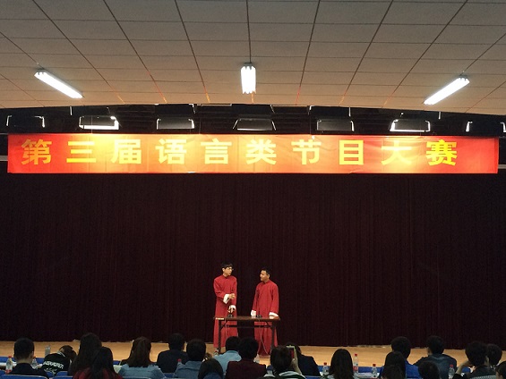在比赛过程中,参赛选手紧紧围绕“語吾言笑,笑言吾語”的主题,精心排练了8个高质量的节目。有反映时代特色的相声《新闻晚播》《世界那么大》;有和大学校园生活息息相关的《我的大学生活》,幽默滑稽的《招聘会》《你吐我吐大家吐吐槽栏目》,意义深刻的《警察与毒贩》,富有历史色彩的《甄嬛后传》《大话三国之貂蝉选亲》。这些参赛节目均充分体现了我院学生积极向上的精神风貌和良好的语言素质。最后,经过公平、公正、公开的评比,共评出一等奖1名,二等奖2名,三等奖3名,信息管理与信息系统1501班获得一等奖。