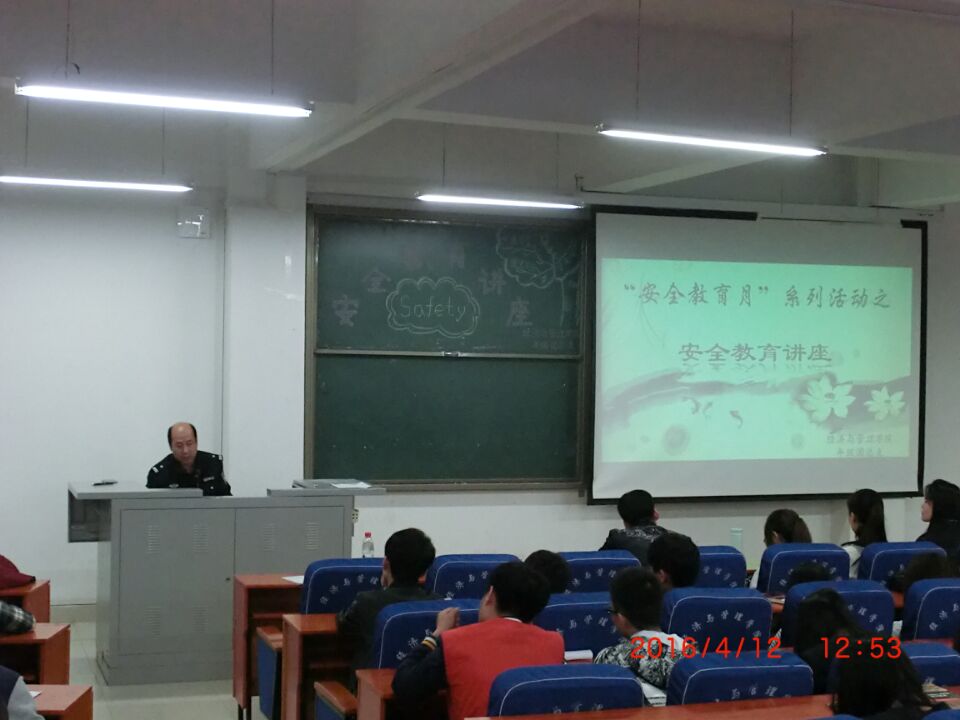 为提高大学生安全防范意识和自我保护能力,4月12日下午12:30,经济与管理学院特邀请郑州市高新区社区民警何常军警官在科学校区经管楼211举办了安全教育知识讲座。
