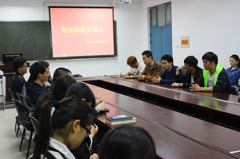 为响应国家“大众创业,万众创新”的号召,4月12日晚19:00,数学与信息科学学院在东一楼216举办了创新创业交流会。此次活动的主讲人为我院创业典型——杨瑞瑞同学、刘俊伟同学。参加此次活动的有我院14级、15级部分有创业意向的学生。