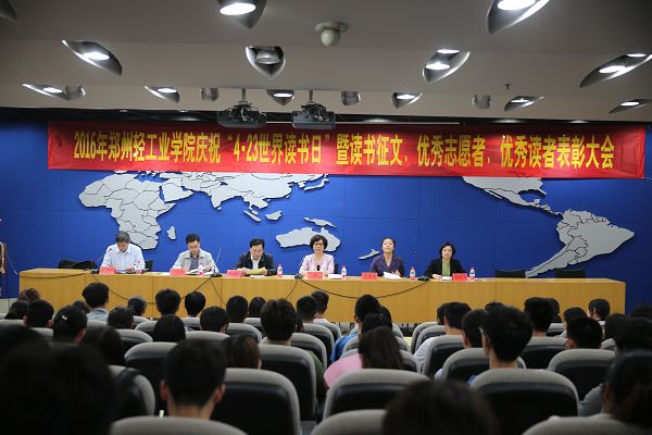4月15日下午,郑州轻工业学院2016年庆祝“4•23世界读书日”暨读书征文、优秀志愿者、优秀读者表彰会在东风校区图书馆学术报告厅举行。副校长王新杰出席大会并讲话。科学校区党政办、党委宣传部、学工部(处)、图书馆负责人及近200名师生参加了表彰会。表彰会由图书馆馆长袁道强主持。