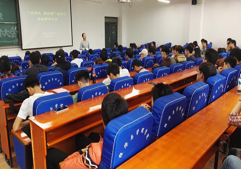 为进一步加强学风建设,提高学生学习质量,督促学生顺利完成学业,4月20日中午,经济与管理学院在经管楼211举办了“正学风聚能量”系列活动--学业警示教育大会。经济与管理学院党总支副书记陈章美、学工办副主任王静、教学秘书何洋、各班学习委员以及受到学业警示的学生参加了会议。会议由学工办副主任王静主持。
