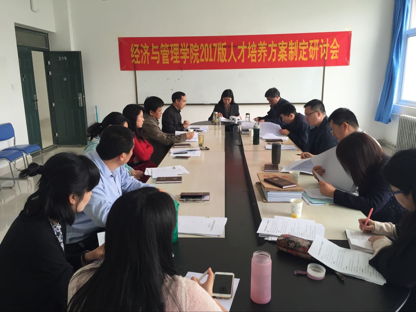 仝副院长首先介绍了教务处2017版人才培养方案制订的要求,回顾了经济与管理学院组织各系到省内外调研的情况。随后各系分专业就调研进行了总结汇报。经过与会人员认真讨论,最后形成了经管类专业人才培养的总体思路。为进一步做好方案制定工作,仝副院长对接下来的工作做了具体的安排。