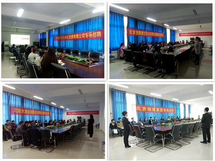 今年我院本、专科毕业生共704人,就业压力大,工作任务重。自2016年3月以来,我院专业教师全员参与,积极邀请校友企业、合作企业以及往年到校招聘的用人单位等,拓宽就业市场,先后举办了郑州格力绿色再生资源有限公司、北京链家集团、河南国能电池科技有限公司、河南水滴金融服务有限公司等近20场专场招聘会,通过学院就业QQ群、微信群、短信等自媒体手段,累计发送就业招聘信息100余条。毕业前,我院在做好就业协议书系统录入、毕业生提前还款、党团组织关系接转、就业报到证以及档案转递等工作的同时,积极加强毕业生“先就业,再择业”就业观教育,抓住机遇,把握好毕业前关键的就业机会,促进毕业生积极就业,努力实现就业率和就业质量“双高”的目标。