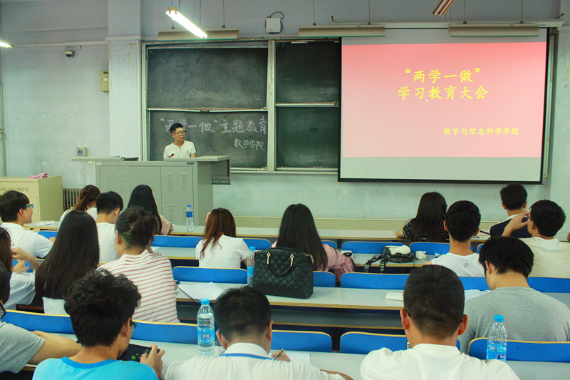 为深入贯彻落实学校党委关于“两学一做”学习教育活动,提高学院全体学生党员党性修养,5月5日下午16:30,数学与信息科学学院在东一楼218开展认真学习“两学一做”学习教育活动,会议由院学生党支部书记张智勤老师主持,全体学生党员参加此次会议。