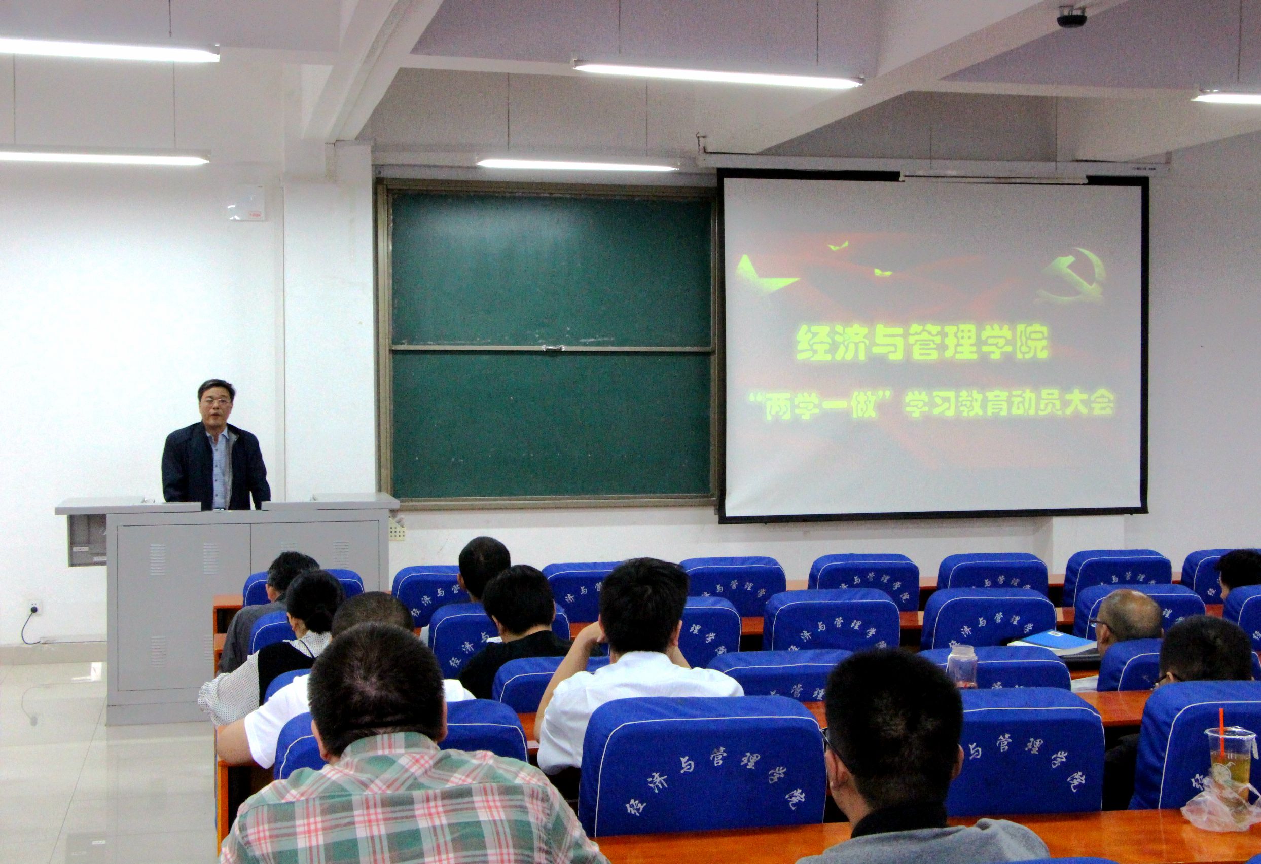 5月12日下午,经济与管理学院党总支在经管楼211教室召开“两学一做”学习教育动员大会。学院全体中层干部、各党支部书记、全体教职工党员参加了会议。会议由党总支书记邢晟同志主持。