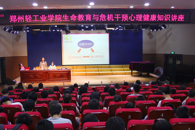 河南希望24热线学术团长、高校危机干预专家训练团团长冯琳涵老师介绍了热线的社会使命;热线接线团团长王建老师讲解了生命危机的九大征兆和干预危机的五大法宝;热线执行长和发起人袁俪萍老师分析了高校学生自我伤害的原因,并带领现场师生进行了极具心理健康教育特色的游戏与互动,激起了师生的浓厚兴趣,讲座现场气氛活跃、掌声不断、高潮迭起。会后,三位老师还与学生代表进行了座谈。