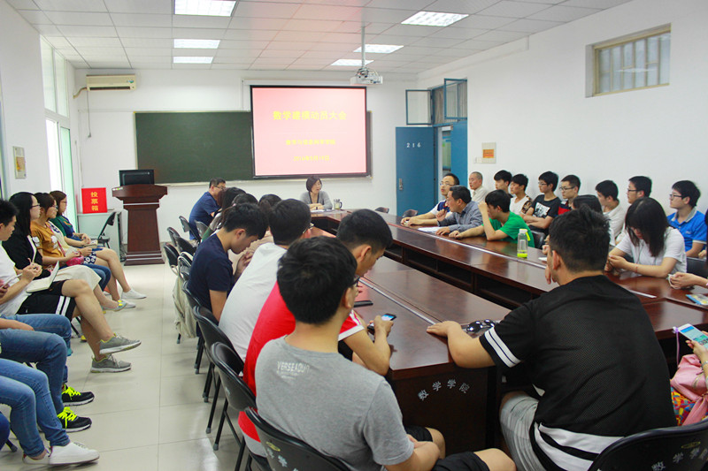 5月19日下午,数学与信息科学学院2016年大学生数学建模动员大会在东一教216隆重举行。本次大会,由学院院长郭晓丽主持,学院党总支副书记张阳、部分老师以及13级学生参加了此次会议。
