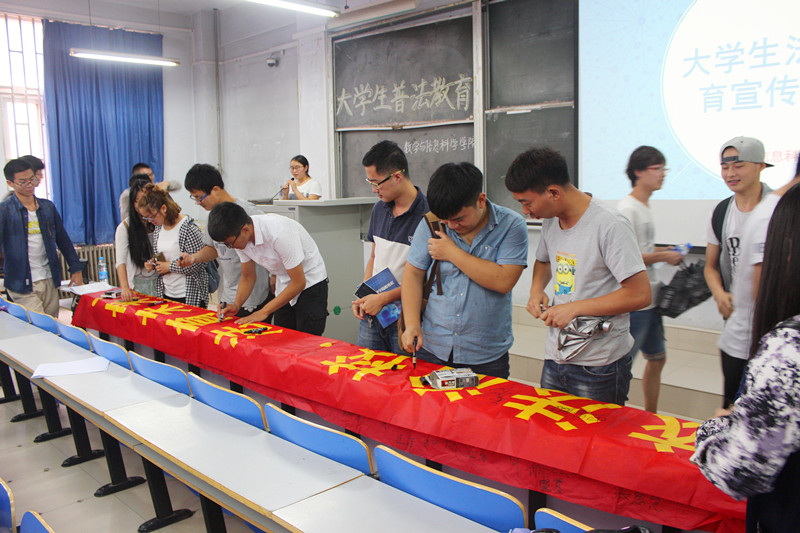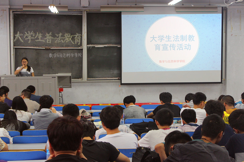 为提高我院学生的法律意识,大力弘扬法治精神文明,创建和谐校园。 6月2日上午,数学与信息科学学院于东一楼218举办了以“人人学法用法,共建法制社会”为主题的普法讲座。我院2014级全体同学参加了此次会议。