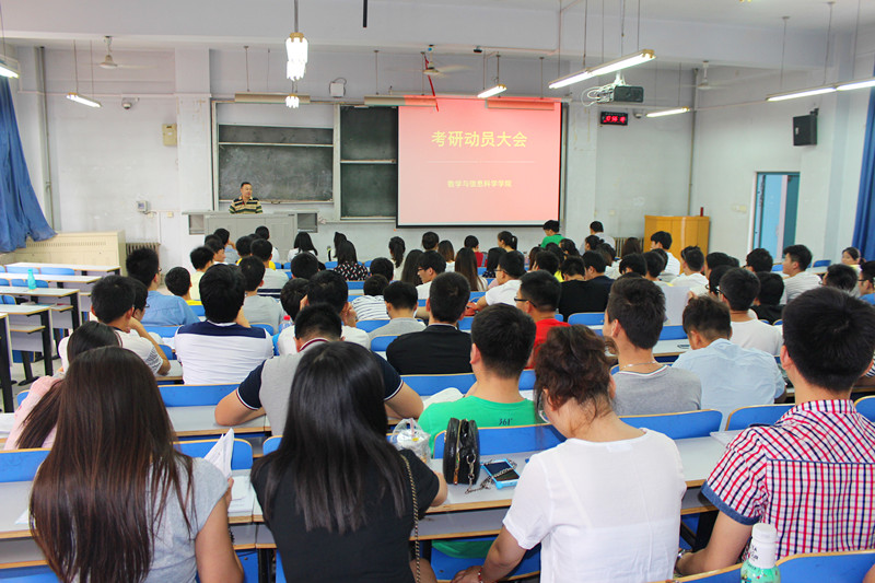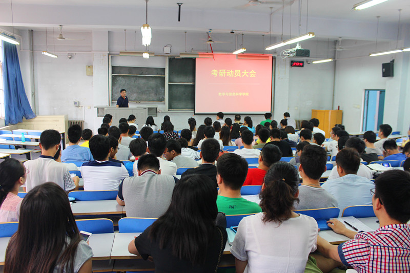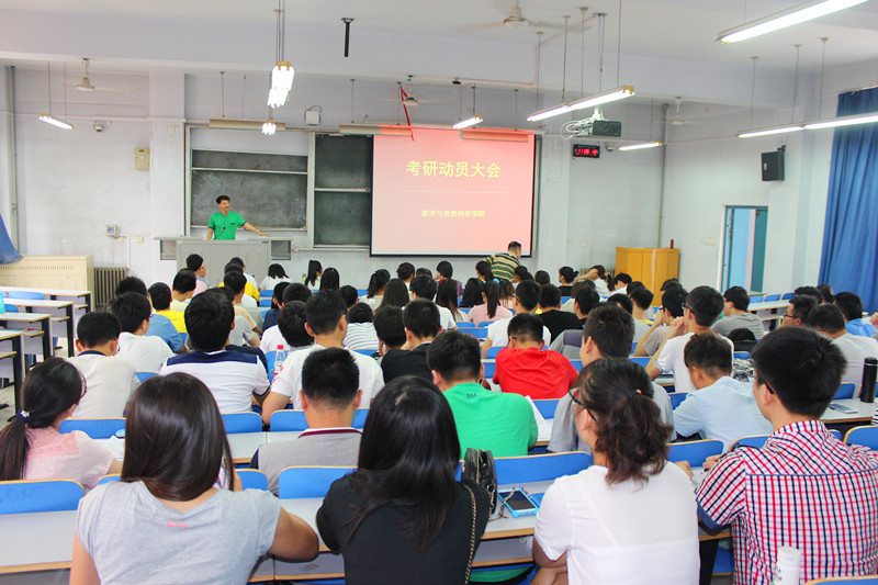 为了调动大三学子考研的积极性,让同学们更好地挖掘自身的潜能,6月15日上午10:30,数学与信息科学学院在东一楼218教室召开2013级学生考研动员会,参加这次会议的有副院长辛向军老师、教研室主任关洪波老师、荣民希老师、2013级辅导员谭俊超老师及全体同学。本次会议由党总支副书记张阳主持。