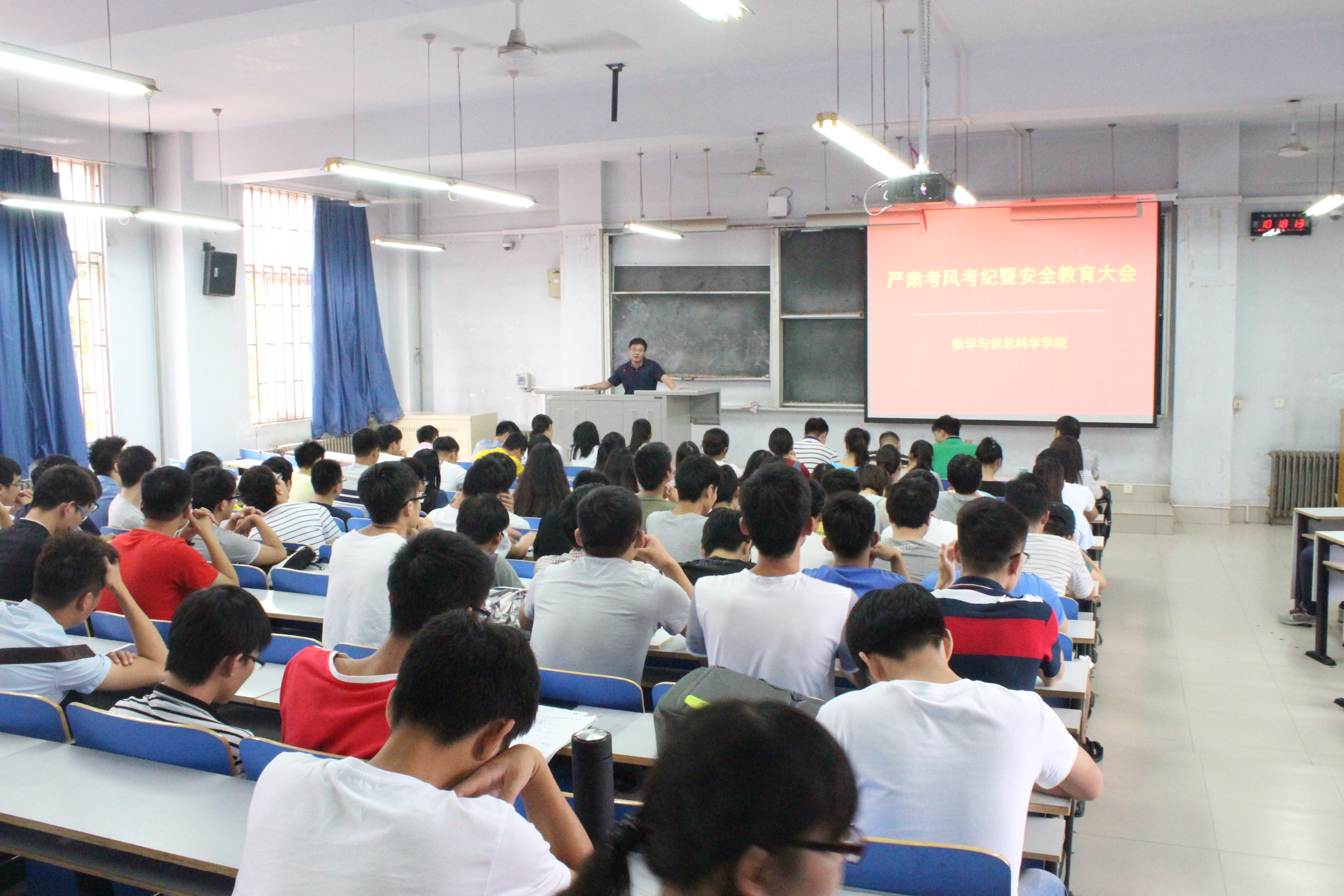 四六级考试和期末考试临近。为了严肃考风考纪,加强大学生诚信教育,端正同学们的学习态度, 6月16日上午10:00,数学与信息科学学院在东一楼218组织召开“严肃考风考纪,立诚信之本”期末考试考风考纪宣传教育活动。
