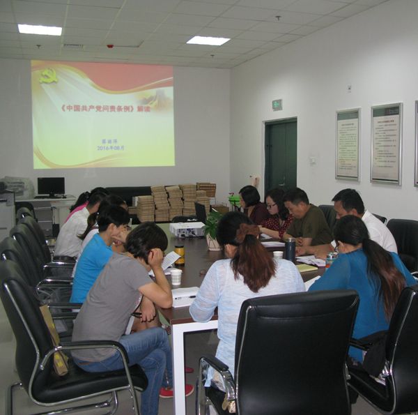 首先,图书馆直属党支部书记蔡丽萍围绕《中国共产党问责条例》为党员同志们上了一堂专题党课。在专题党课中,蔡书记对《中国共产党问责条例》内容进行了详细的解读,并指出,《问责条例》是全面从严治党的制度创新,是标本兼治的重要措施,是实现新时期党中央提出的各项目标任务的纪律保证,也是切实加强党的建设的动员令,必须加强学习、全面贯彻落实。