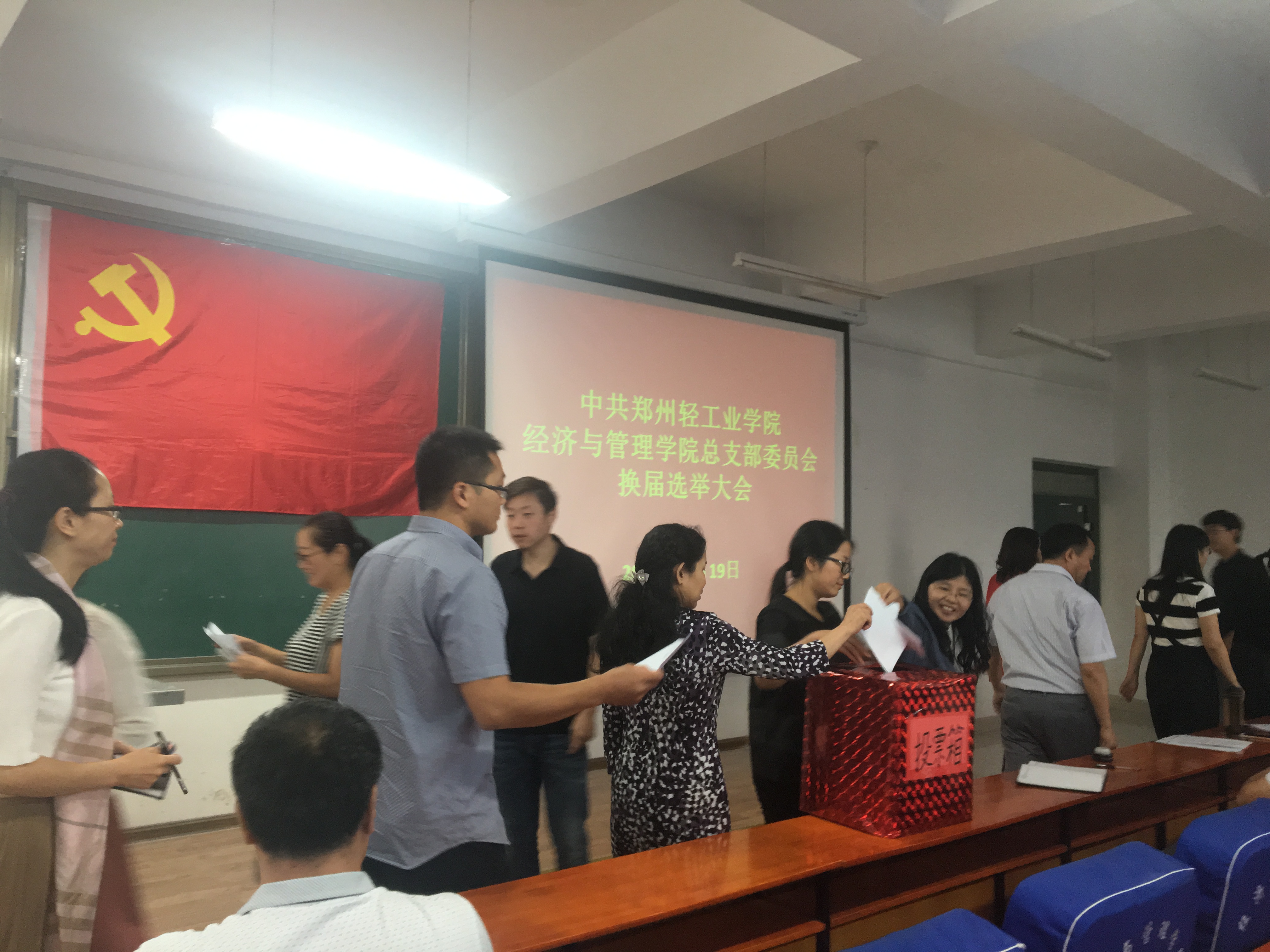 仝新顺同志宣读了选举办法,符加林同志介绍了党总支委员候选人基本情况。全体党员严格按照选举规定,通过无记名投票差额选举产生了经济与管理学院新一届总支委员会委员5名。