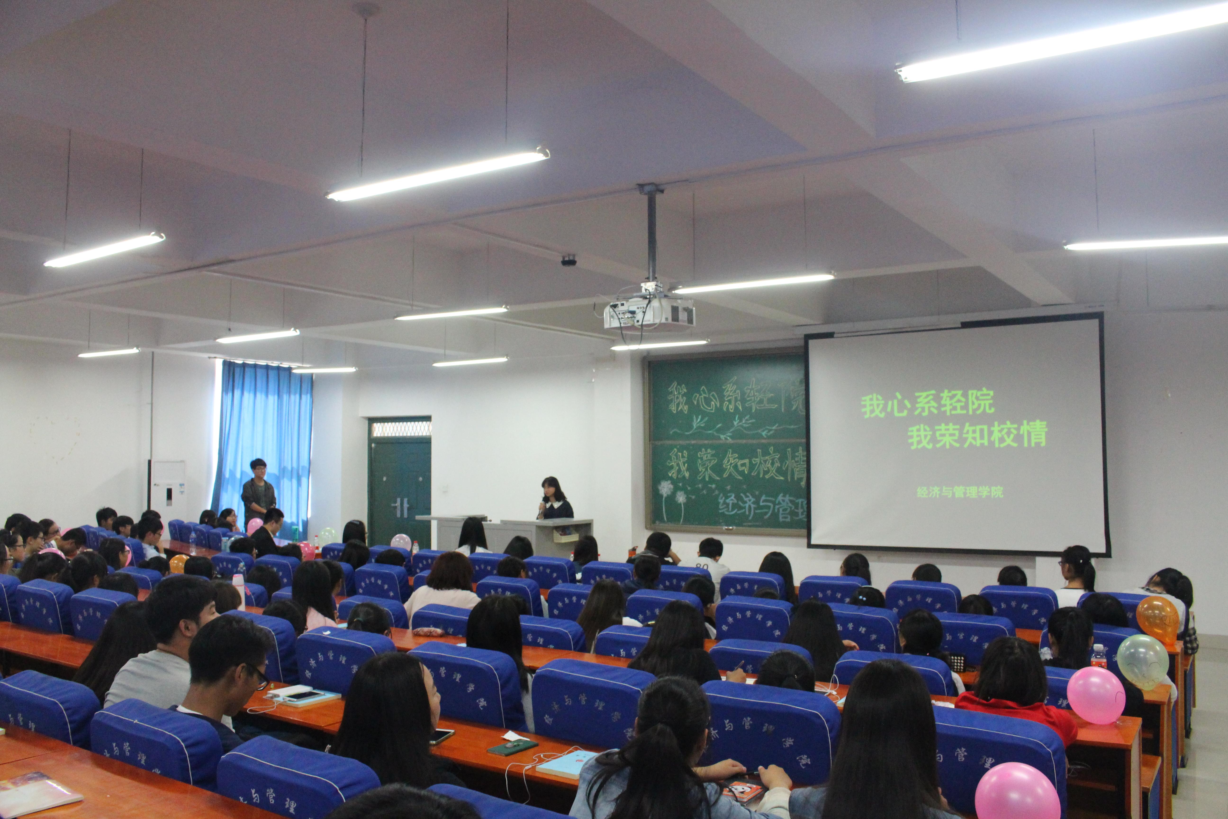 为了帮助大一新生深刻了解学校历史,树立正确荣辱观,经济与管理学院于2016年9月29日中午12:30在经管楼211举行了“我心系轻院,我荣知校情”主题讲座。来自经济与管理学院一百余名新生参加了此次讲座,本次讲座由历届优秀学生代表主讲,旨在促进大一新生形成强烈的爱校荣校意识,并督促自己牢记轻院人精神,以优秀前辈为榜样严格要求自己,实现大学梦想,将来报效社会、祖国。