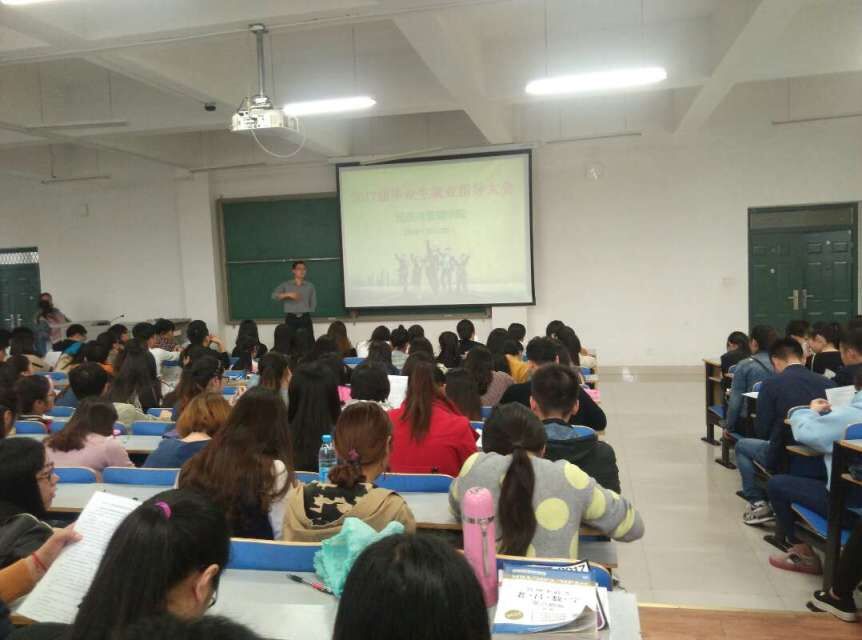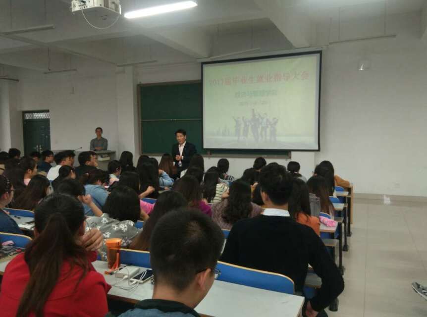 我院2017届毕业生共有701人,涉及8个本科专业和2个专科专业,为使本年度就业指导会议取得良好效果,我院根据不同专业和班级人数共分成三场进行。