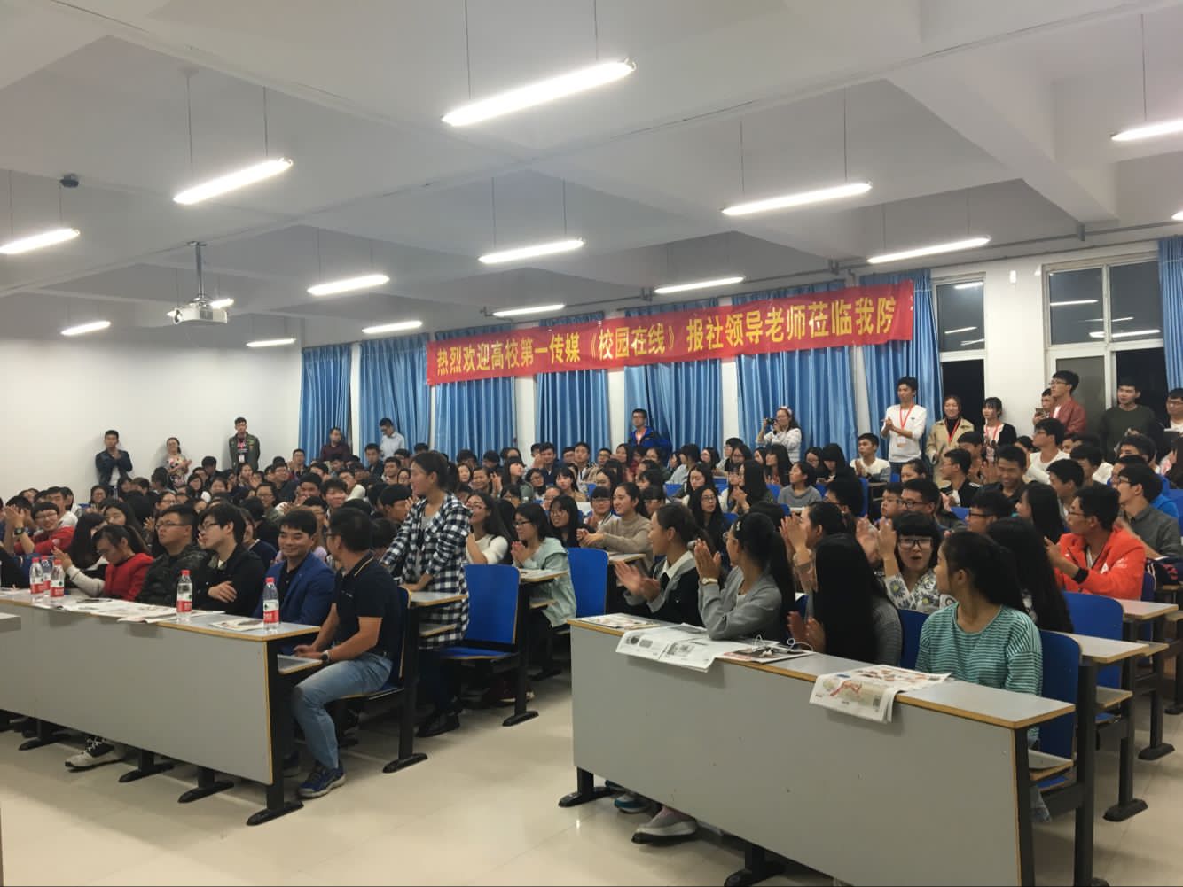 为响应党十八大关于“开展全民阅读”的精神,促进校园精神文明建设,提高学生的文学水平和新闻素养。2016年10月20日下午7点,《校园在线》报社的领导、老师一行人应邀走进经济与管理学院,在经管楼309室举办了《校园在线》公益之光活动。