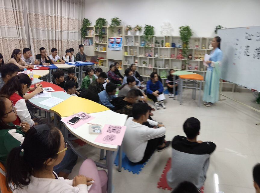 2016年10月22日星期六晚上八点,为避免大一新生由于学习环境的突然改变,导致学习态度松散、手机不离手、脱离纸张生活等情况的出现,由校心理健康教育中心主办,经济与管理学院学生会心理部承办的“国学荡涤心灵座谈会”在经管楼208办公室召开,参加座谈会的是经济与管理学院部分大一新生和心理部全体成员。
